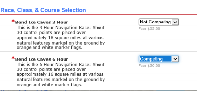 - Under course selection, choose “Competing” for whatever course you want, the 3 hour or the 6 hour. Above is a screen grab of what this should look like for a 6 hour competitor.
