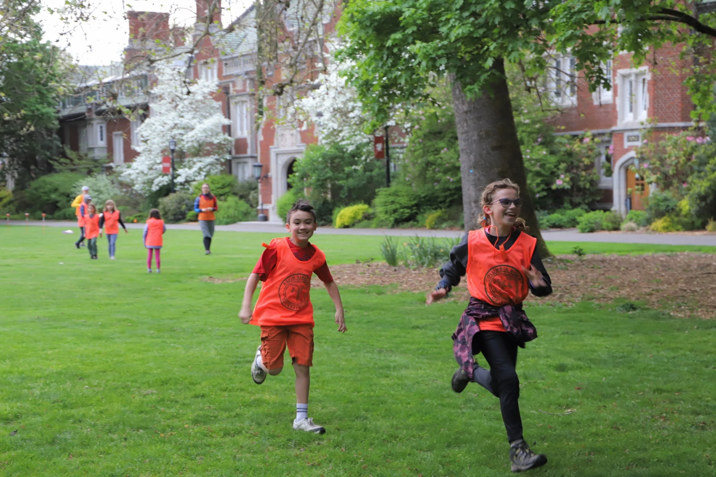Adults do not register as participants for CROCodiles Field Days, but parents/guardians of participants are always welcome to be present and observe the activities. Parents/guardians are also welcome to relax and let the coaches be the ones keeping their eyes on the kids. Kids age 8-12 wear orange pinnies when we are responsible for their whereabouts and safety.