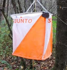 The numbered circles on the map are called “control points." Control points are distinct terrain features, such as a trail junction, boulder, building, etc. On the course, control points are marked with an orange and white flag that looks like a small box kite.