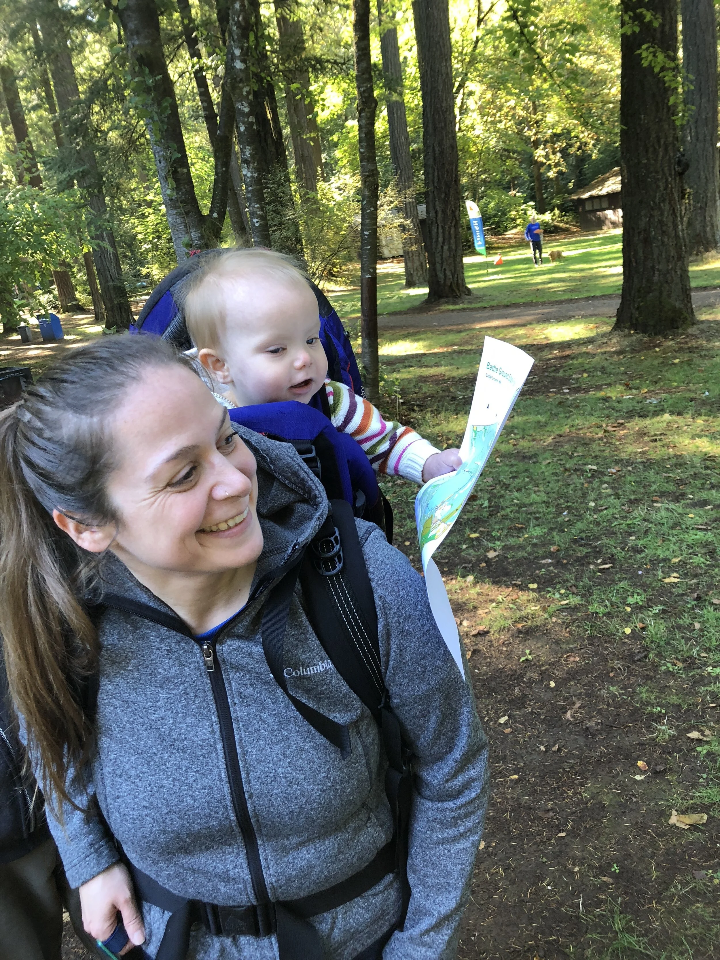 Sure thing! Orienteering can be enjoyed as a cross-country run or a casual stroll in the park, your choice. We have many families at our meets, sometimes with kids in a backpack. While some participants are there to be competitive, most people simply want to enjoy seeing new trails, get some outside exercise, and use their navigation brain. Also, you can go on the course solo or as part of a family/group, your choice.